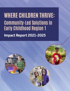 Early Childhood Region 1 staff developed a report, “Where Children Thrive: Community Led Solutions in Early Childhood Region 1”, to highlight stories of transformation at both the professional and family levels. Childcare professionals report greater confidence, stronger onboarding practices, and more collaborative networks thanks to one-on-one coaching and peer mentorship. Families describe enrichment opportunities as ways to build community and support systems in what can often feel like isolating times. Small investments made a big difference, whether it was fencing for a family childcare provider, training for a librarian, or a story walk in a local community. These efforts ripple outward, strengthening not just individual families, but the fabric of our region.